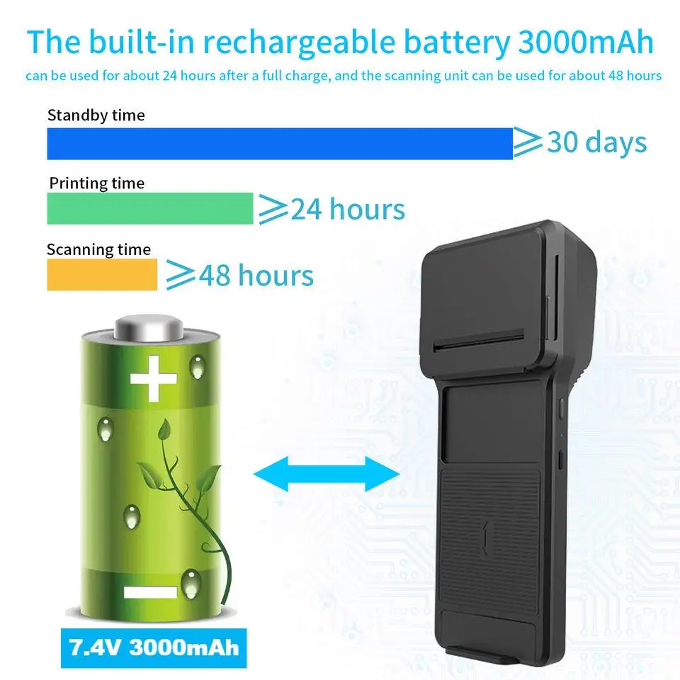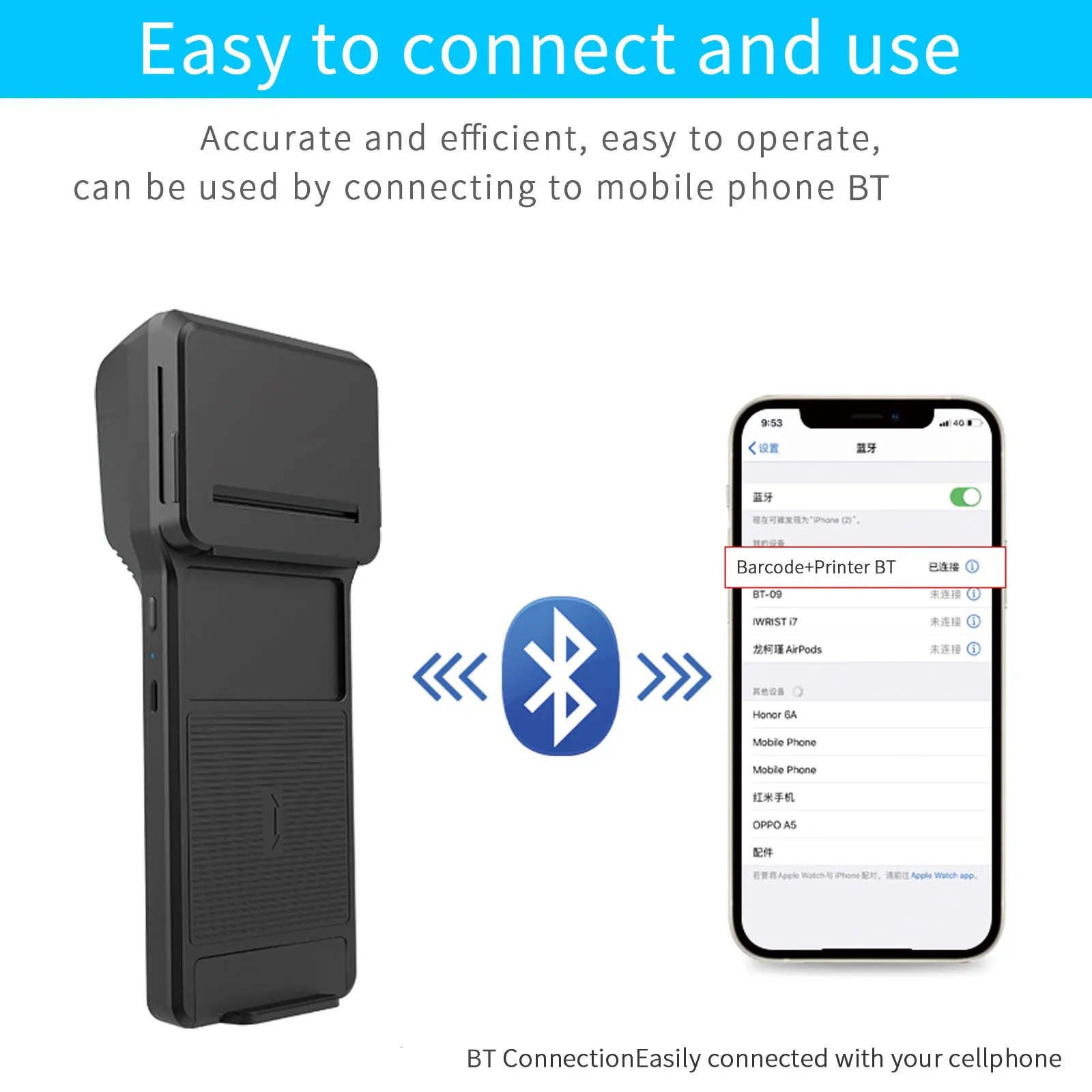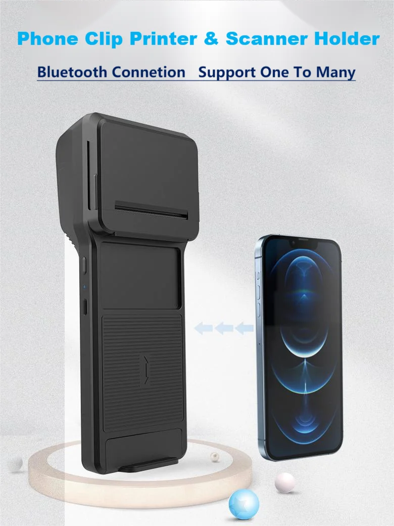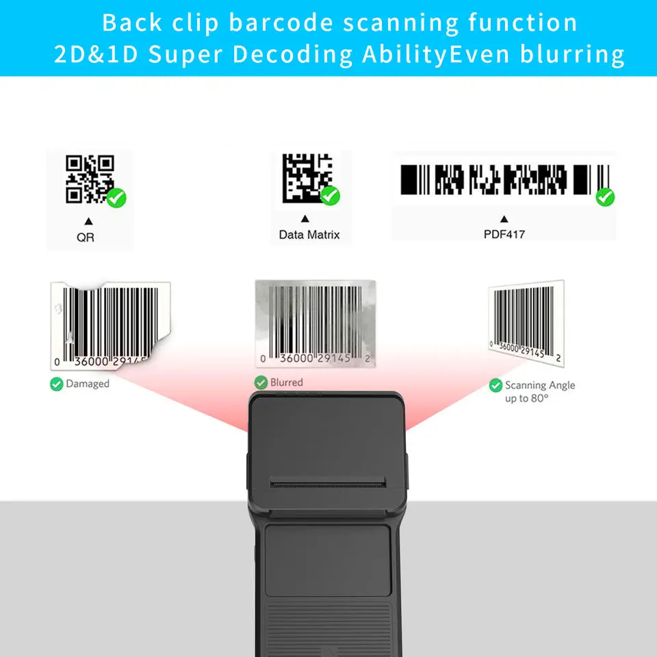 58mm Thermal Printer and 2D Scanner Bluetooth 2 in 1 Phone Back Clip 7.4V 3000mAh Battery Mobile Wireless Scanner