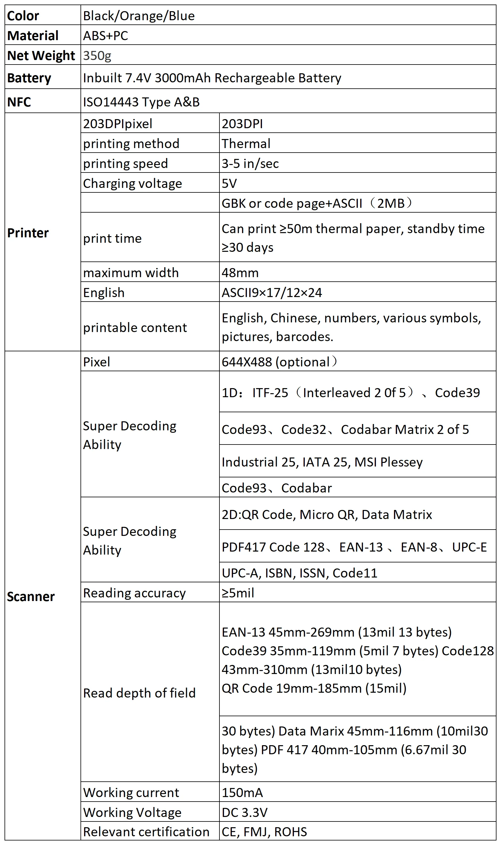 1. Highly integrated: thermal printer, 2D scanner, inbuilt battery and NFC reader (optional)